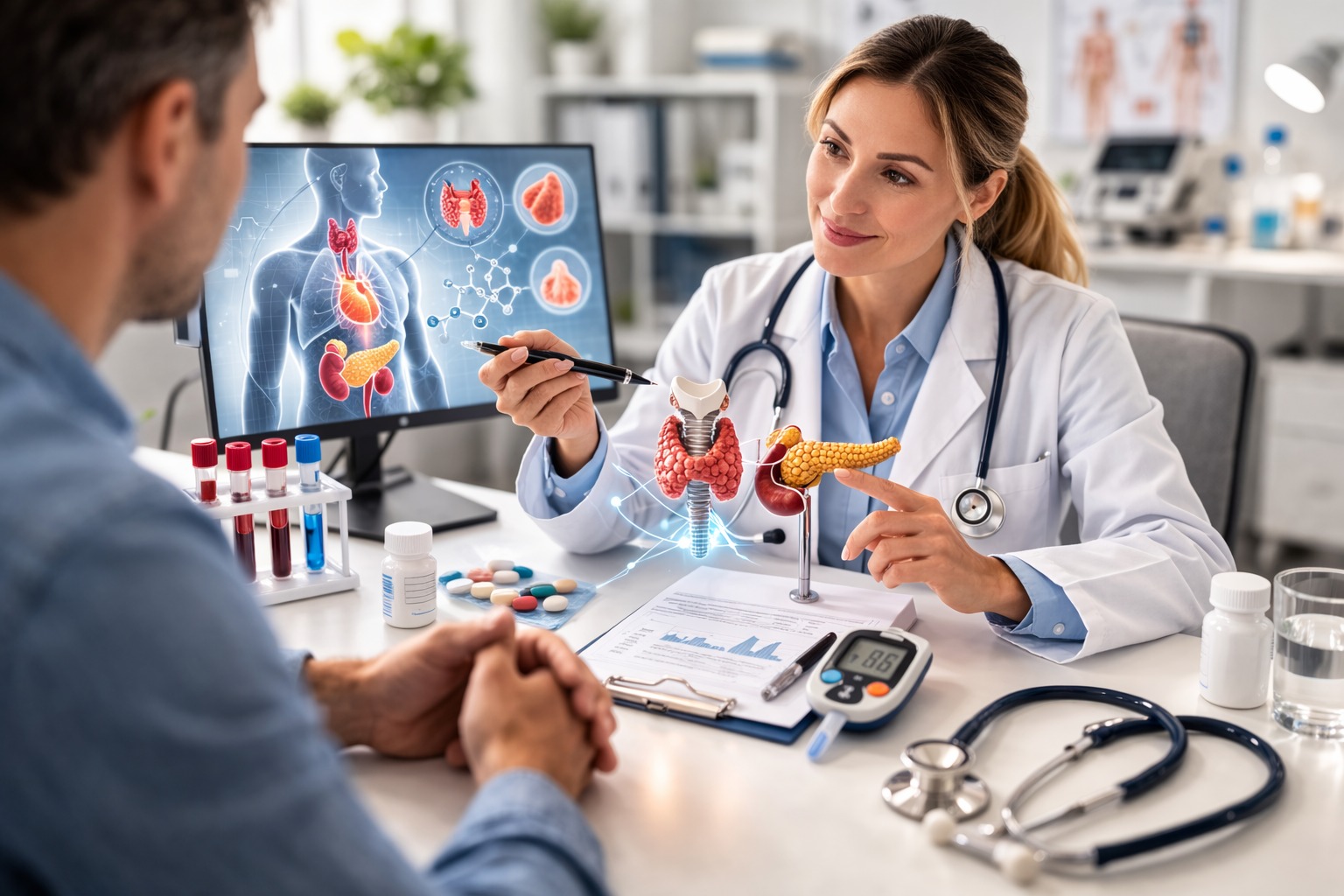 Especialidade médica que trata das doenças relacionadas aos hormônios e ao metabolismo. Atua no diagnóstico e controle de condições como diabetes, distúrbios da tireoide, obesidade e alterações hormonais em geral.